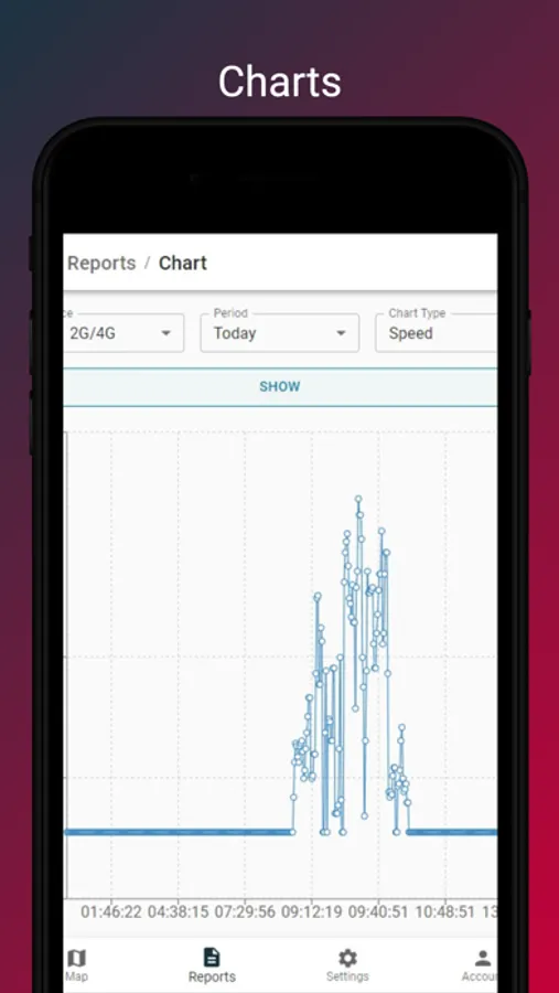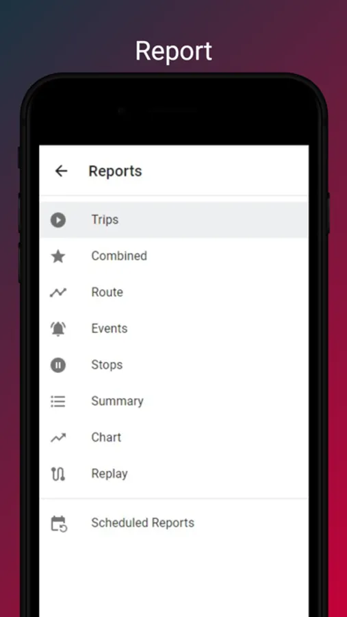 - Reports of: Route, Trips, Stops, Events and Charts.