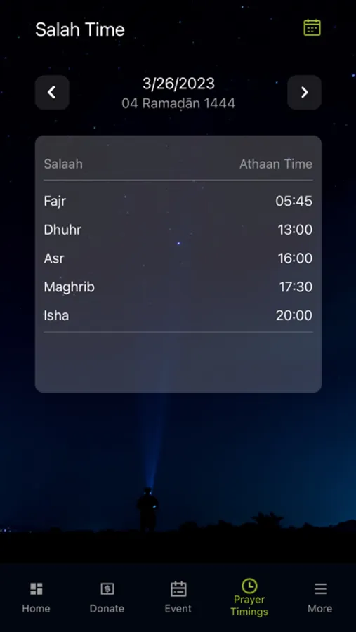 Prayer Times: Get accurate and up-to-date prayer times for the Masjid, with configurable alarms for each prayer.