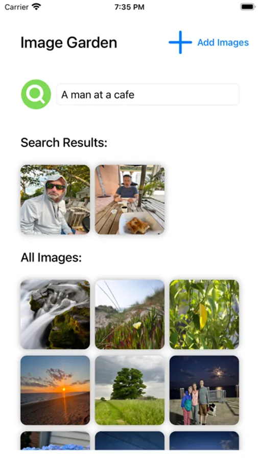 Image Garden allows you to search your photos in your phone using artificial intelligence. You can upload your images to the app, and then search them either by typing a search query, or by finding images from similar images. Think of this as a visual search engine, except just for images on your phone.