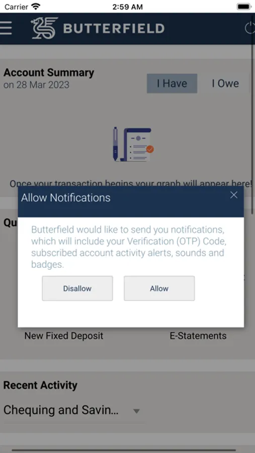 NOTE: You must have an active account and have completed an online application in order to use Butterfield Online Banking.