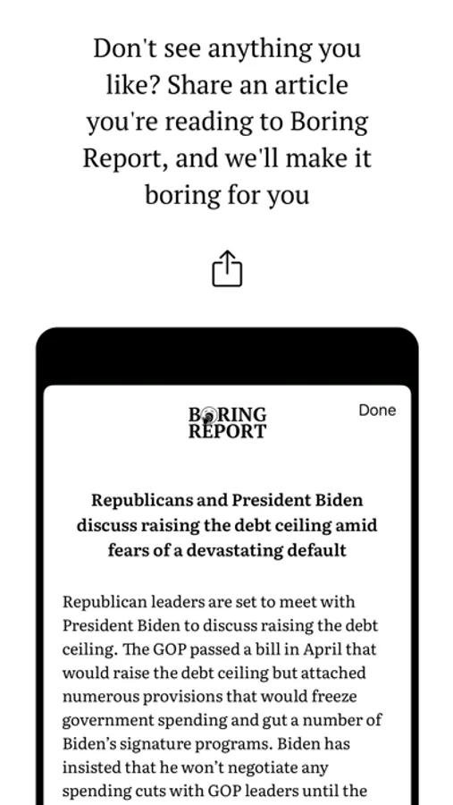 Boring Report is an app that aims to remove sensationalism from the news and makes it boring to read. In today's world, catchy headlines and articles often distract readers from the actual facts and relevant information.