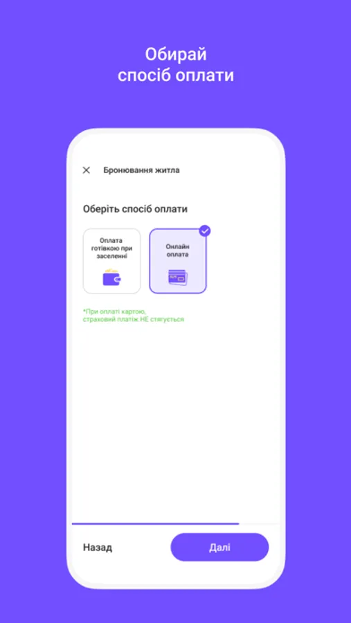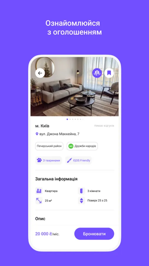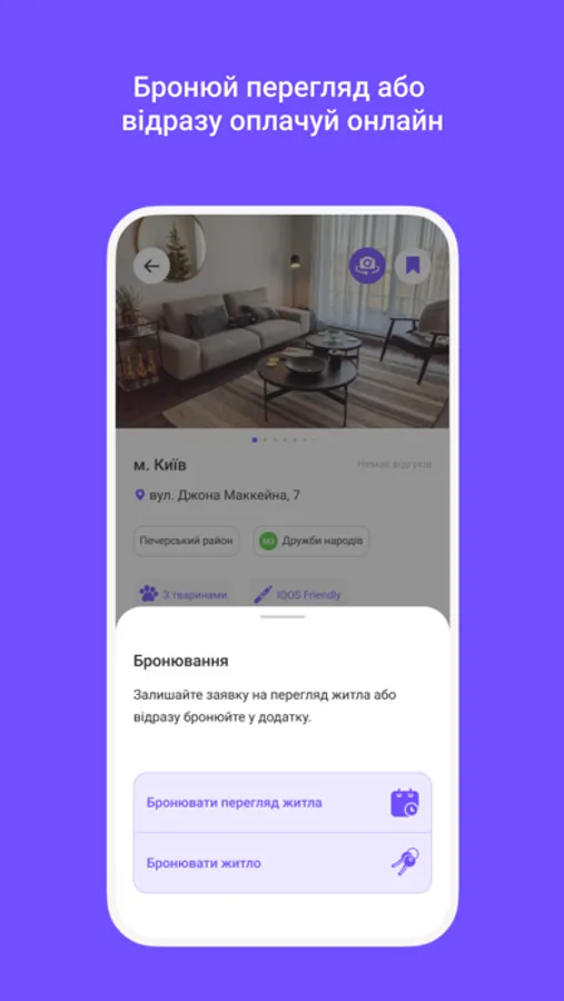 - Бронюйте перегляд житла або оплачуйте одразу перший місяць у додатку.