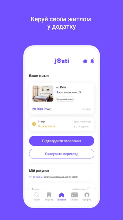 - В процесі проживання сплачуй у додатку та зберігай всю важливу інформацію у власному профілі.