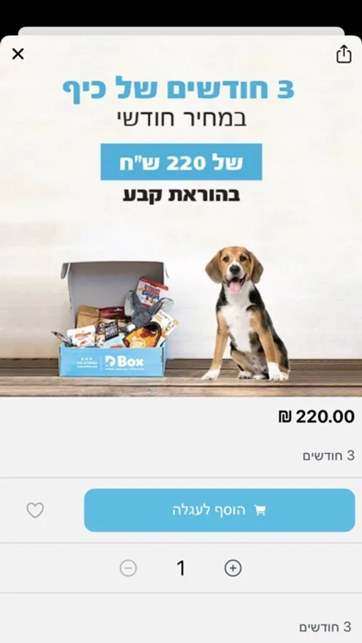 אצלנו באפליקציה תמצאו קופסת הפתעות חודשית לכלב שלכם.