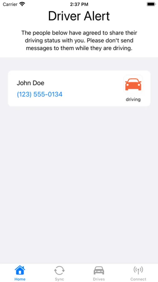 The Driver Alert app tells you when your family and/or coworkers are driving. This allows you to choose not to send messages to them until they have finished driving. Sending messages to someone who is driving could distract them, potentially causing a dangerous situation or crash. The Driver Alert app should reduce distracted driving due to mobile phone use (MPUWD).
