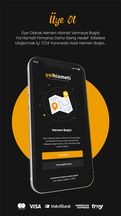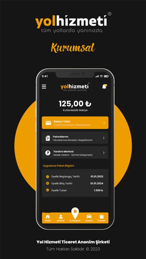 Ayrıca siz de işine ve müşterisine değer veren bir hizmet sağlayıcıysanız, dilerseniz "YOL HİZMETİ KURUMSAL" mobil uygulamasından yol yardım hizmeti verebilir seçkin kurumsal üyelerimizin arasına siz de katılabilirsiniz.