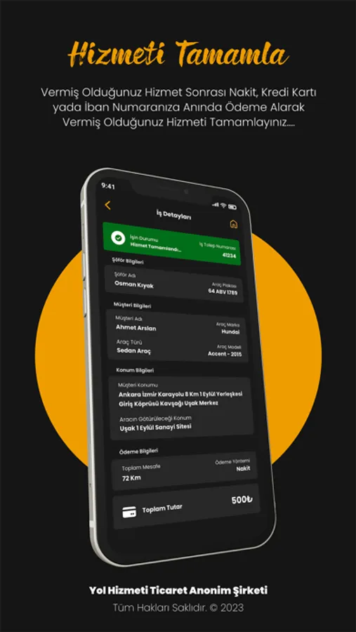 "YOL HİZMETİ" ihtiyaç duyduğunuz anda çekici&vinç, oto arıza, oto elektrik, oto çilingir, yakıt yardım, oto lastik gibi birçok hizmeti tek bir uygulama üzerinden seçmenize ve anlaşmalı iş ortaklarımızla doğrudan uygulama üzerinden iletişime geçerek sürpriz fiyatlarla karşılaşmadan nakit ya da kredi kartı ile ödeme yaparak en kaliteli hizmeti almanızı sağlar.