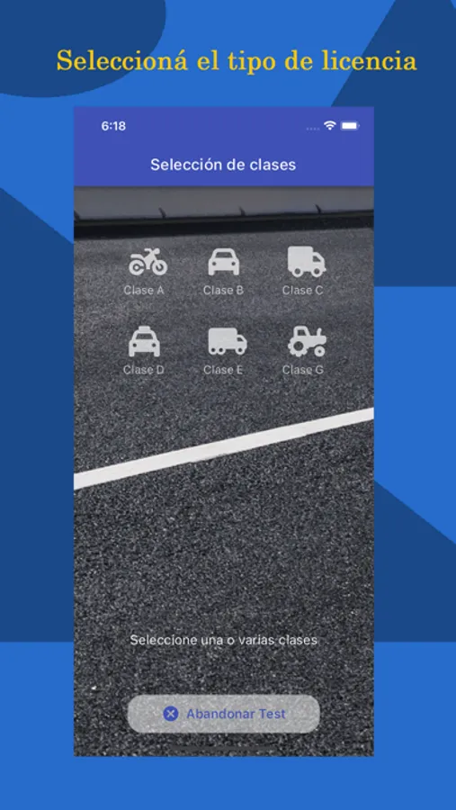 Las preguntas se determinan de acuerdo a la/s clases de licencias seleccionadas (o tipos de licencia de conducir). Antes de comenzar el examen se deben indicar las clases de licencia a obtener: