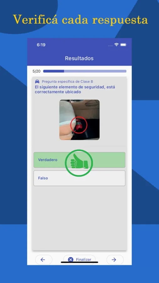 La aplicación permite realizar el examen de conducir de forma similar a los que se toman en el trámite de obtención o renovación de la licencia de conducir en Argentina.