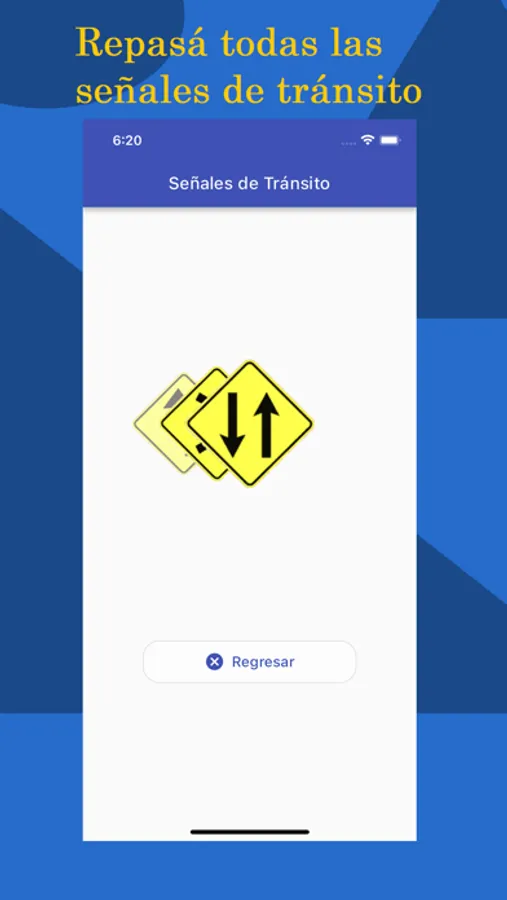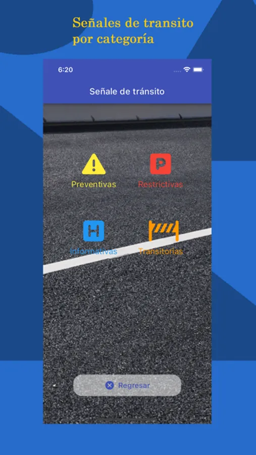 - Un menú específico para repasar todas las señales de tránsito según su tipo: