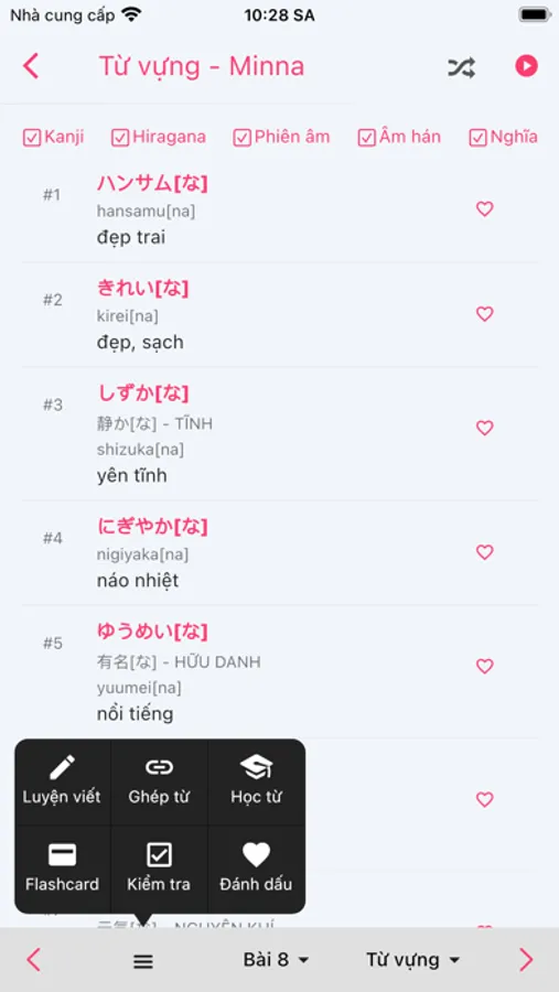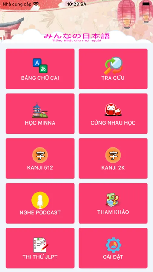 Ứng dụng cung cấp cho bạn thư viện với đầy đủ 50 bài học căn bản theo đúng chuẩn bộ giáo trình Minna No Nihongo bao gồm học từ vựng mới, ngữ pháp và làm các bài tập đi kèm lời giải (nếu cần). Bạn có thể học nhiều bài cùng lúc hoặc ôn tập lại nhiều lần, luyện tập ngữ pháp thường xuyên bằng các bài tập chuẩn mà app đã hỗ trợ. Có nhiều chức năng luyện viết từ vựng, luyện đọc, kiểm tra, flashcard,... giúp bạn dễ dàng ghi nhớ các từ vựng trong giáo trình.