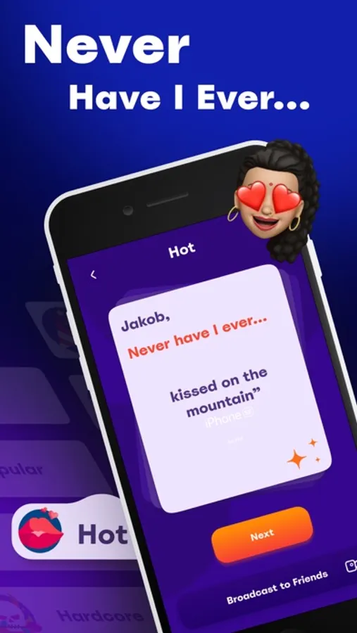 Whether you on a first date or a nice evening, Never Have I Ever is always the right choice! Classic game all over the world that let’s you to learn more about anybody and create fun atmosphere. Just download the app and try to use it! We truly believe: unforgettable memories will stay with you forever!