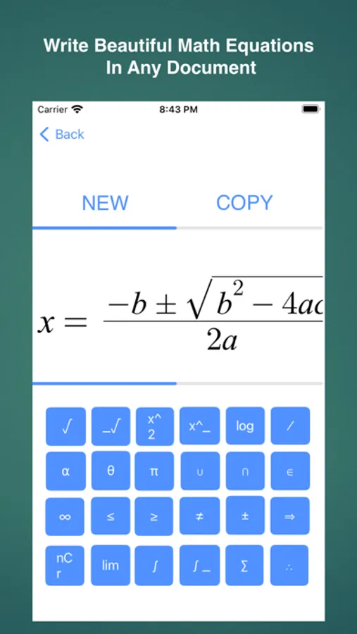 MATH Keys is a completely free online equation editor that allows users to write mathematical equations, formulas, and symbols online! Our mission is to boost productivity in academic life whether that is for teachers, graduates, or students.