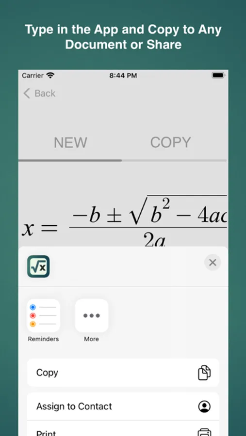 With the latex notation tools, you can copy or share whatever formula, equation, or symbol you just created anywhere you want.