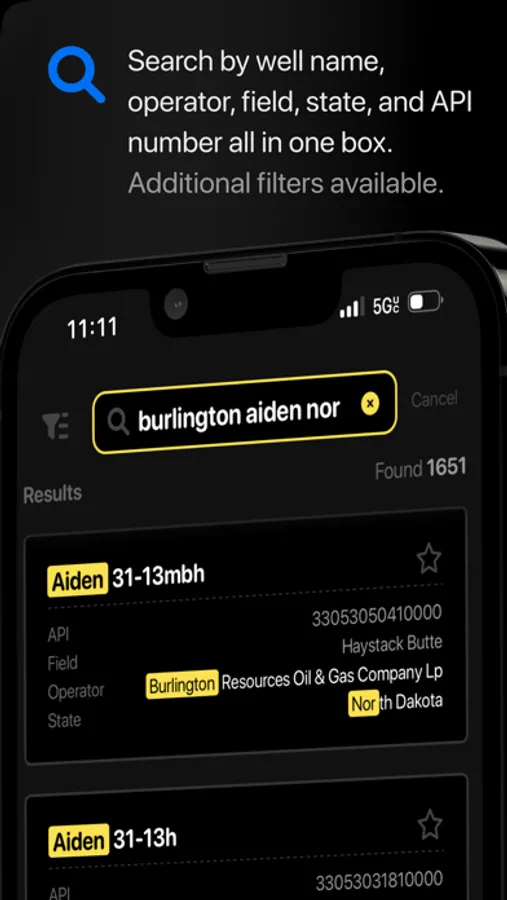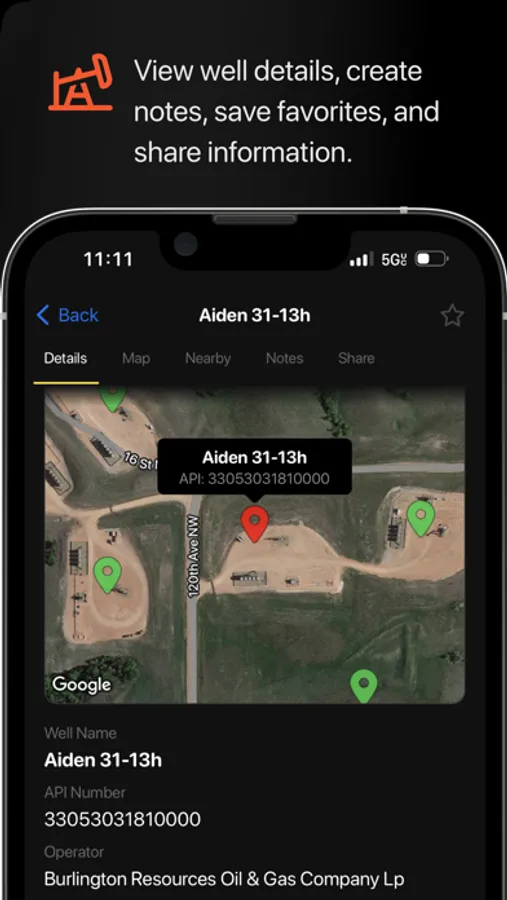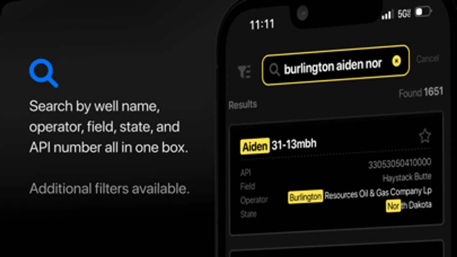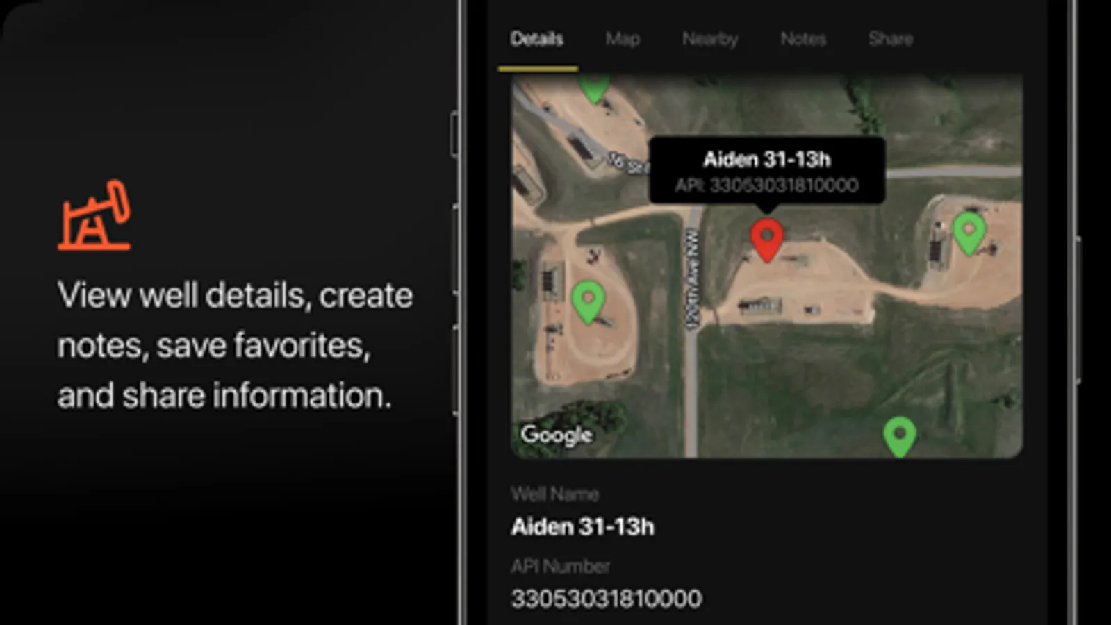 Quickly search and filter well site data. Begin navigation or Share information for others to navigate.