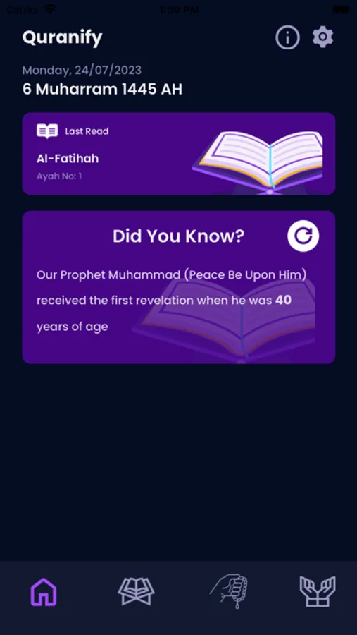 Thirdly, the app includes "Did you know" information, which provides users with interesting facts and trivia about Islamic history and culture. This feature promotes knowledge and understanding of Islam among users.