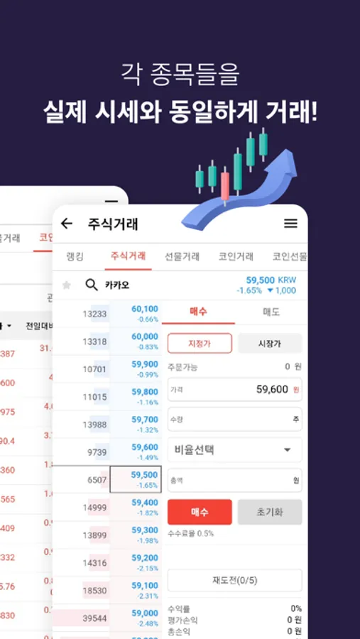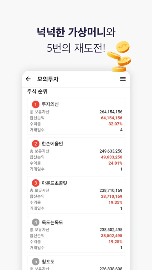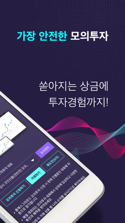 매달 상금이 걸려있는 모의투자 대회를 개최하며, 정확하고 빠른 시세 및 차트를 제공하며 다양한 정보를 획득할 수 있는 커뮤니티 공간도 있습니다.