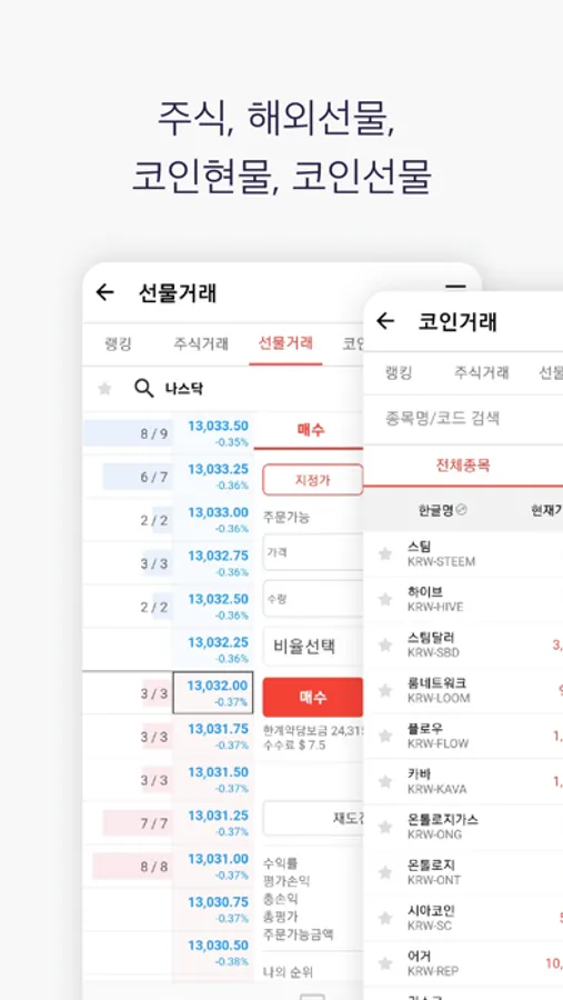 주식, 코인현물, 코인선물, 해외선물을 단 하나의 플랫폼에서! 플렉스머니는 주식, 코인현물, 코인선물, 해외선물 전부를 거래할 수 있는 모의투자 플랫폼입니다.