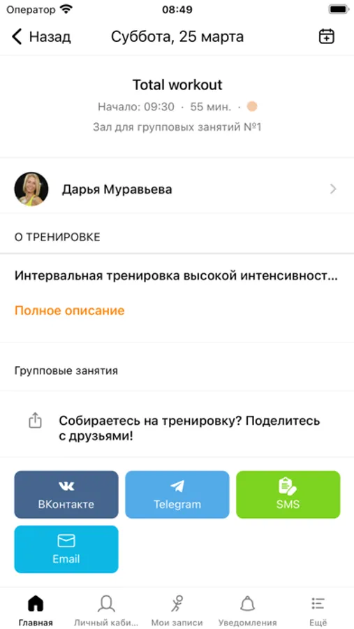 С помощью приложения вы можете следить за новостями, расписанием клуба, оперативно получать информацию об изменениях в расписании и специальных предложениях, записаться на групповые, персональные тренировки, получать информацию о своем активном абонементе, самостоятельно заморозить/разморозить свой абонемент.