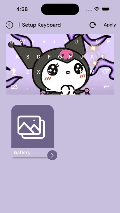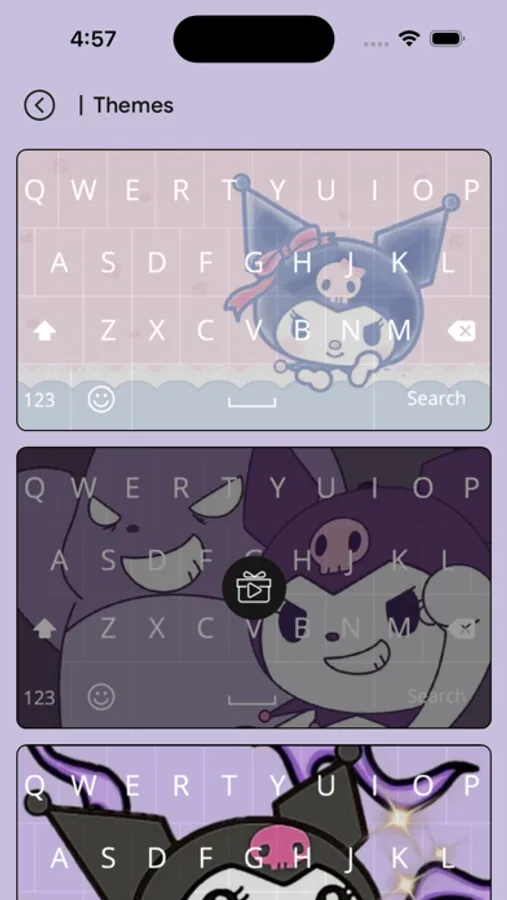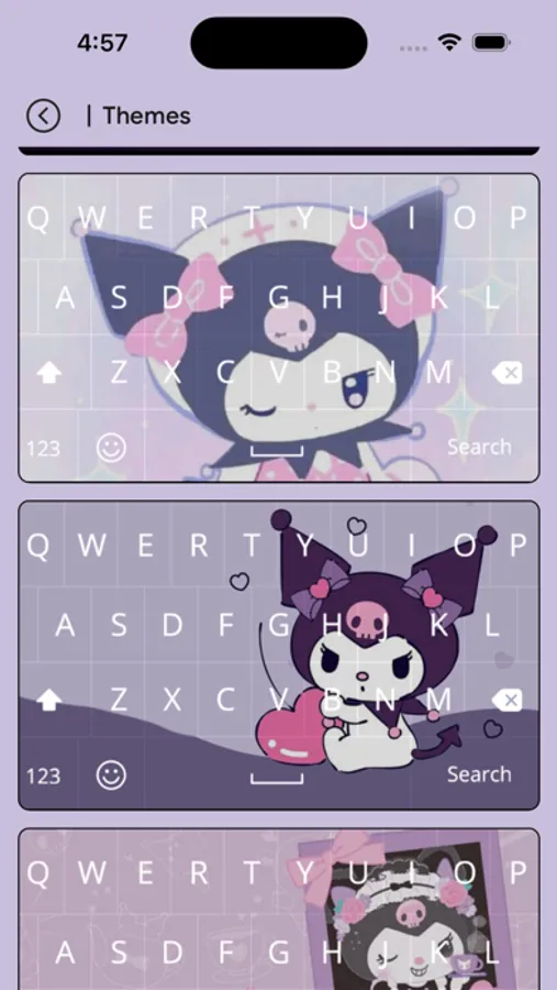 - 3. Go to your keyboard, tap and hold the Globe button, Select "Keyboard Themes —Sanrio Characters - keyboard".