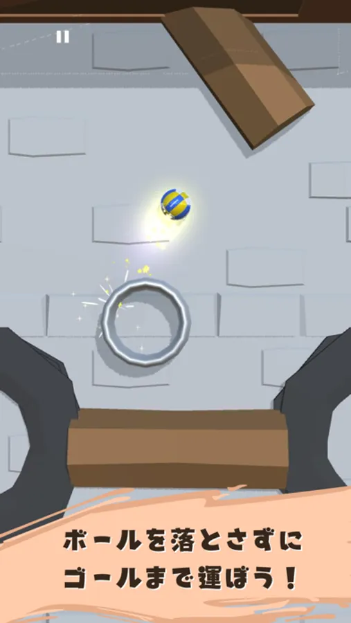 このゲームは、リングを操作してボールを落とさずにゴールまで運ぶゲームです。ルールは簡単で、「ボールを落としたらゲームオーバー」、「ゴールにボールを入れたらゲームクリア」となっています。