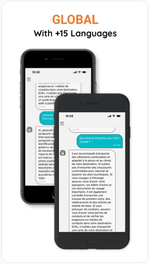 - Multilingual chat: Your intelligent AI guide is here to assist you with travel tips, recommendations, and information about your destination in more than 15 popular languages.