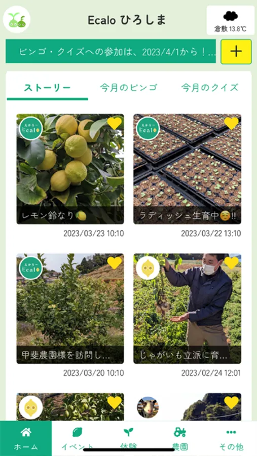 『Ecalo(えかろ~)ひろしま』は、広島各地の「えかろ~」な一次産業の魅力をお届けする、広島初の”スマート体験農園”プロジェクトです。