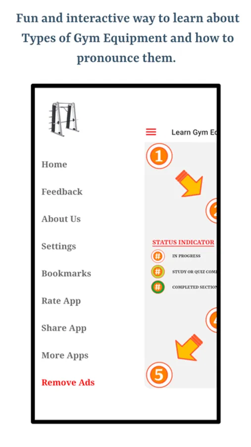 The app will help you learn the correct pronunciation of Gym Equipment using English language. Following are the main features of this app