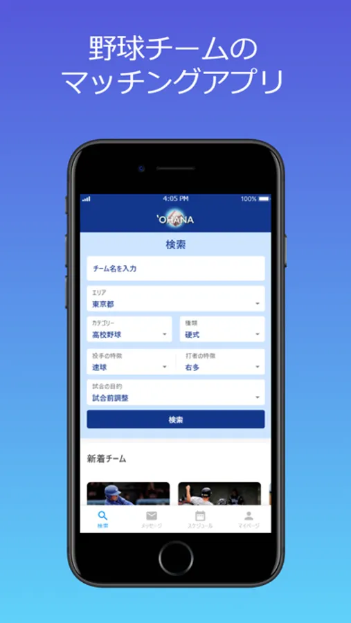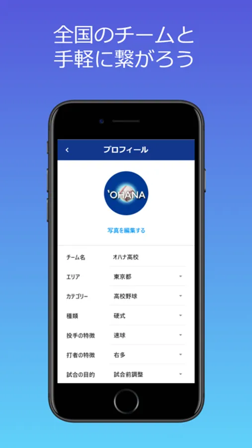 この OHANA を使えば電話する手間を省き、簡単な操作で練習試合の申し込みが可能に!