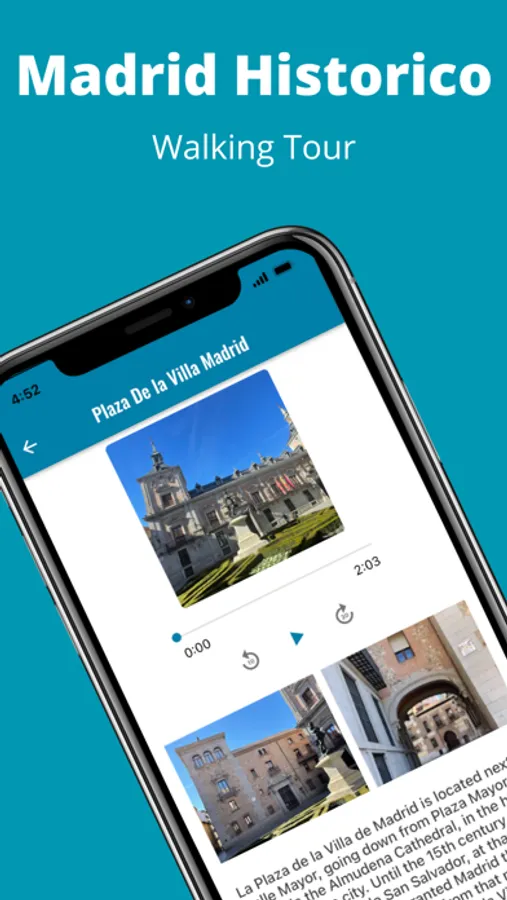 3.- A simple text and audio description of the main monuments on the route and their history. So you can listen while you do the tour.