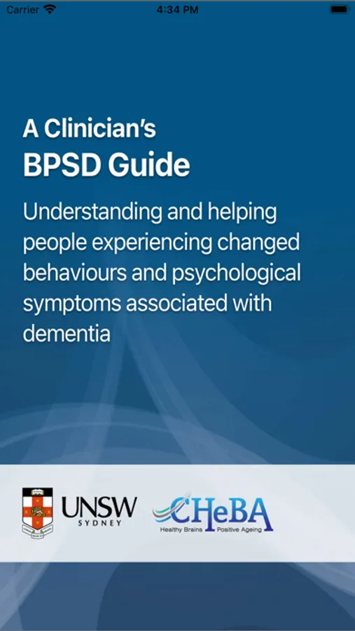 The content of this app is based on the document A clinician’s BPSD guide: Understanding and helping people experiencing changed behaviours and psychological symptoms associated with dementia (Clinician’s BPSD Guide, 2023) in development by the Centre for Healthy Brain Ageing (CHeBA), which will replace the current document Behaviour Management - A Guide to Good Practice: Managing Behavioural and Psychological Symptoms of Dementia (BPSD Guide, 2012). Both unabridged documents provide a comprehensive evidence and practice-based overview of principles, practical strategies and interventions to support people living with dementia.