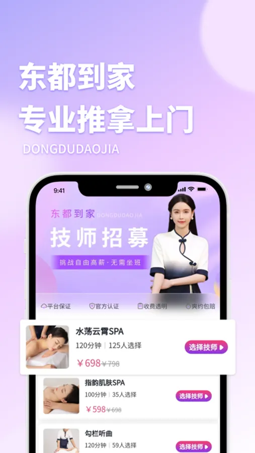 东都到家,面向全国的按摩APP软件,目前已开通的城市有:通辽市、无锡市、义乌市、东阳市、合肥市、六安市、武汉市、株洲市、惠州市、重庆市、成都市、贵阳市、昆明市。更多城市陆续开放中,让您足不出户即可享受专业的按摩服务,为您解除一天的劳顿。