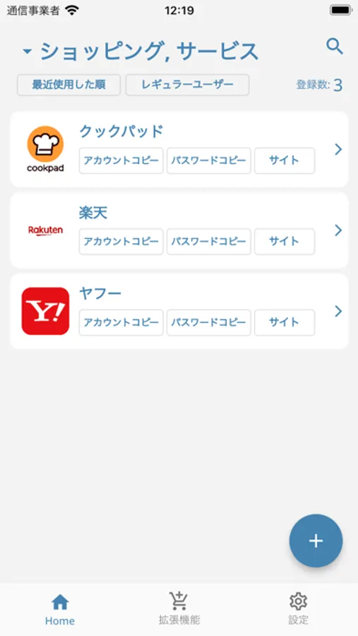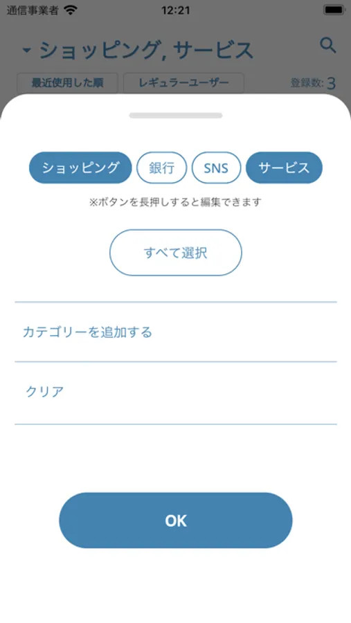 登録したいサイトの頭文字を入れるだけで簡単登録。
