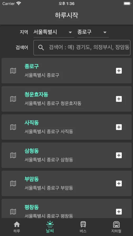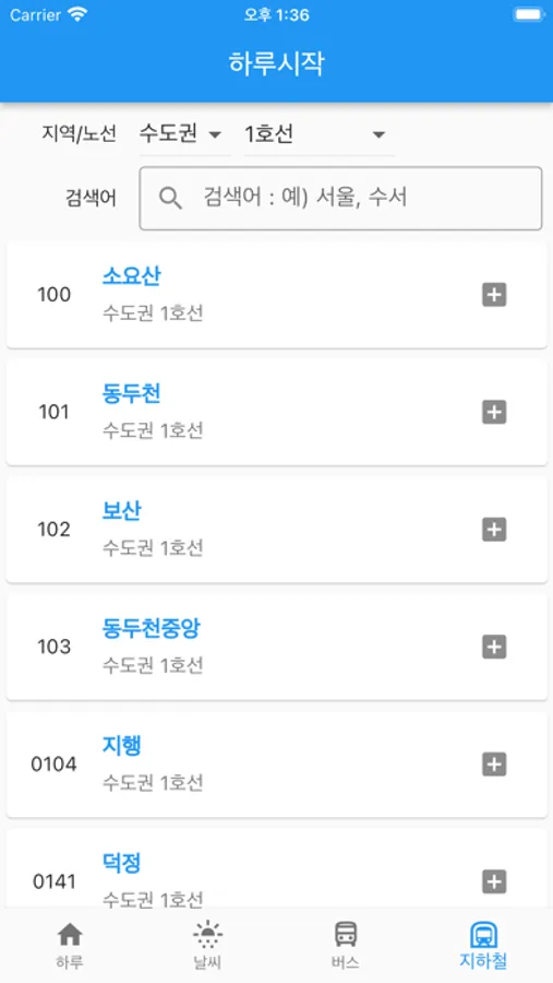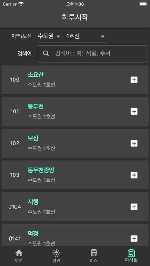 - 하루탭에서 추가된 날씨, 버스, 지하철 정보를 확인하고 하루를 시작하세요.