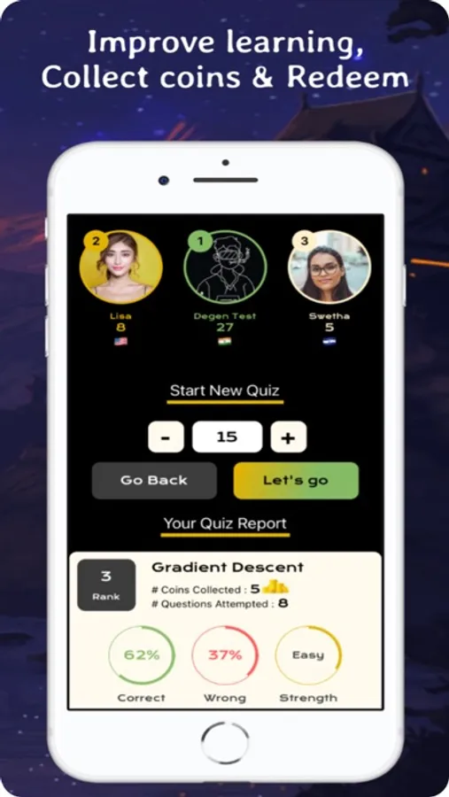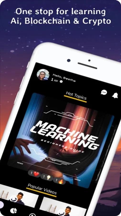Overall, our mobile app provides a comprehensive social learning platform for top professionals in AI, Blockchain, and Crypto. It uses AI evaluation, education via entertainment, micro-learning, quizzes, audio bytes, shows, seasons, and episodes to deliver an engaging and effective learning experience.