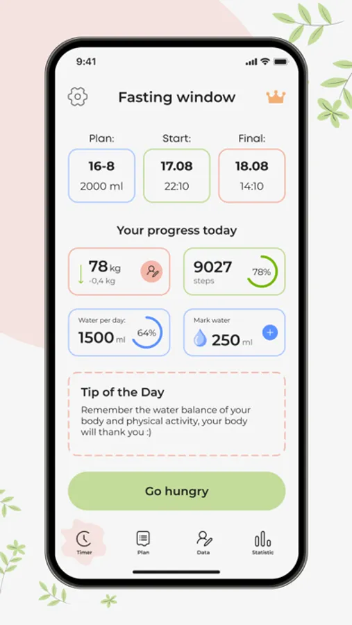 - Statistics for every day: weight, fasting time, water consumption! Be aware of your success!