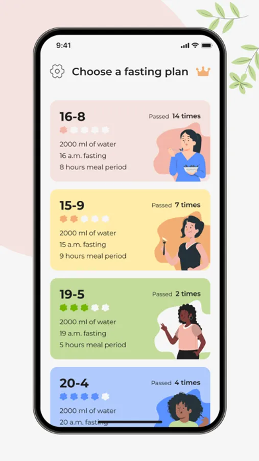 The BeSlim application will select the best fasting plan for you, keep track of water and your activity.