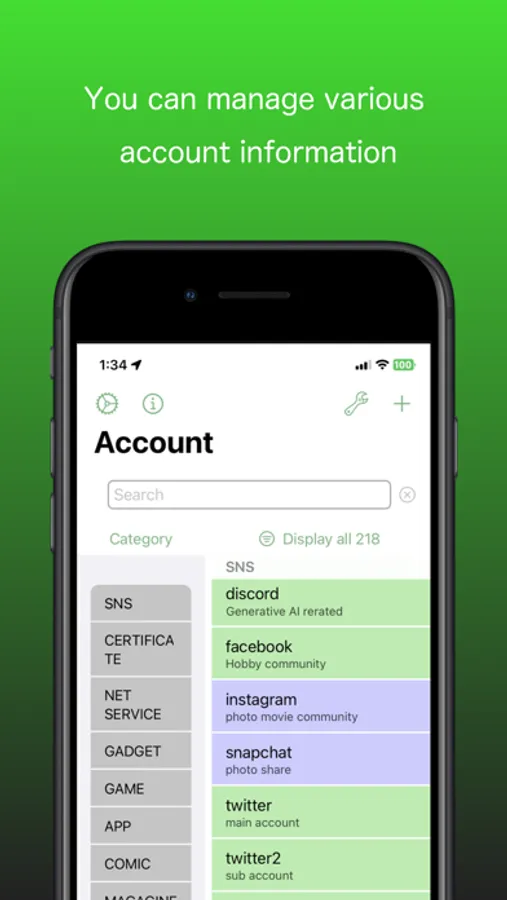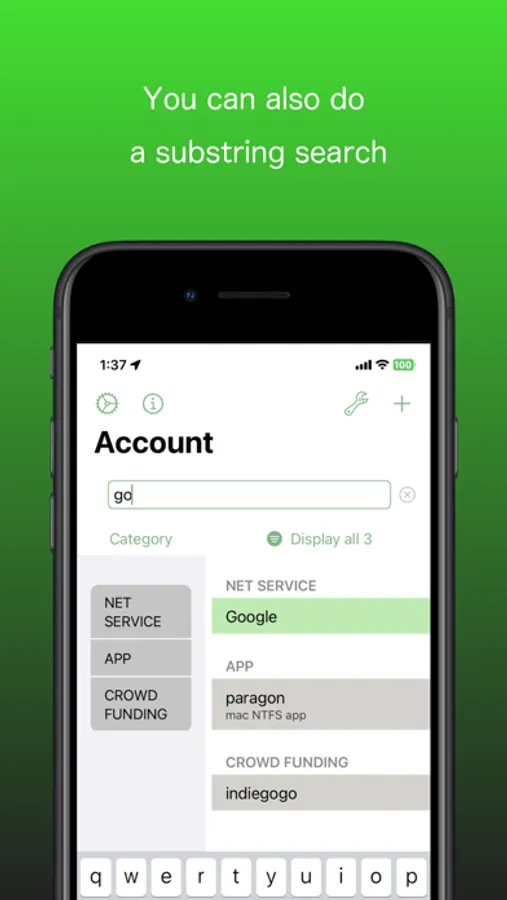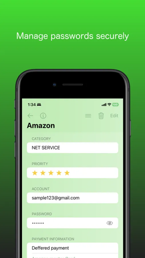 - Account information including passwords are stored with AES256bit encryption, and encryption keys are safely managed with Apple's Keychain.