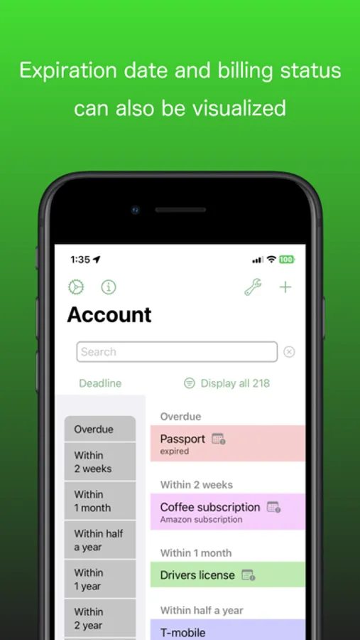 - You can also register the expiration date of the account and display only the ones that are about to expire.