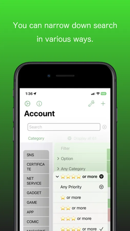 - Easy-to-understand icon display and search for accounts that are no longer used, expired accounts, and accounts with continuous billing.