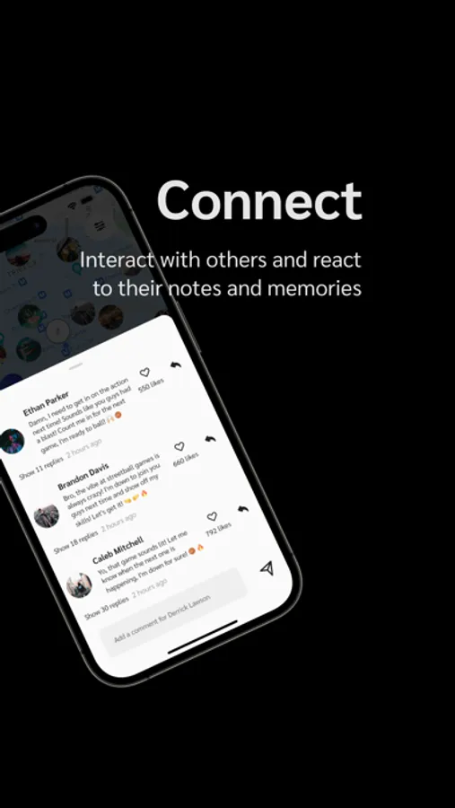 Our intuitive interface makes it easy to interact with other users by commenting on or liking their notes or memories. Engraved empowers you to see every moment, no matter where you are in the world. Whether you choose to explore locally or with our premium subscription, you can discover what people are up to across the globe, and find new places, events, and people to connect with.