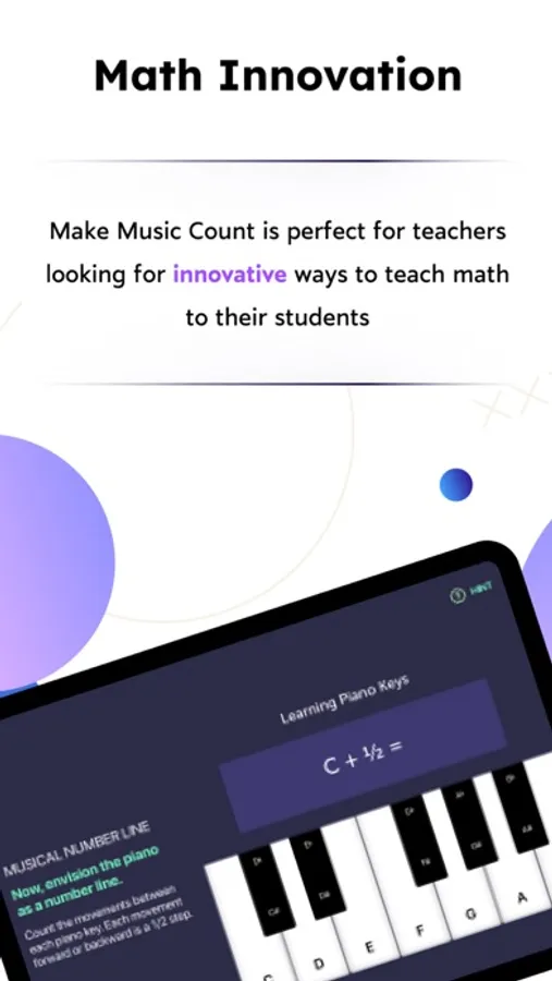 Make Music Count is the new creative mathematics curriculum, by award winning Marcus Blackwell, that teaches each lesson through playing songs on the piano. This app is best for second grade students through twelfth grade students where each musical note to play is derived by solving math equations. Here is a new method parents and teachers can use to excite students about learning mathematics while also playing the piano at the same time. We are proud to share our STEAM learning, Arts Integrated into mathematics, culturally responsive learning, and SEL method that will bring joy and confidence to math learning.