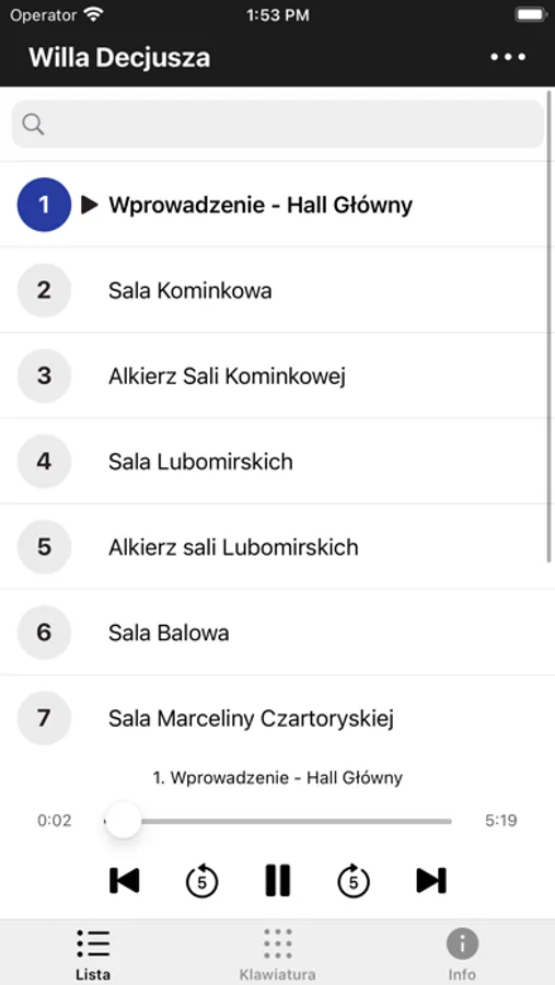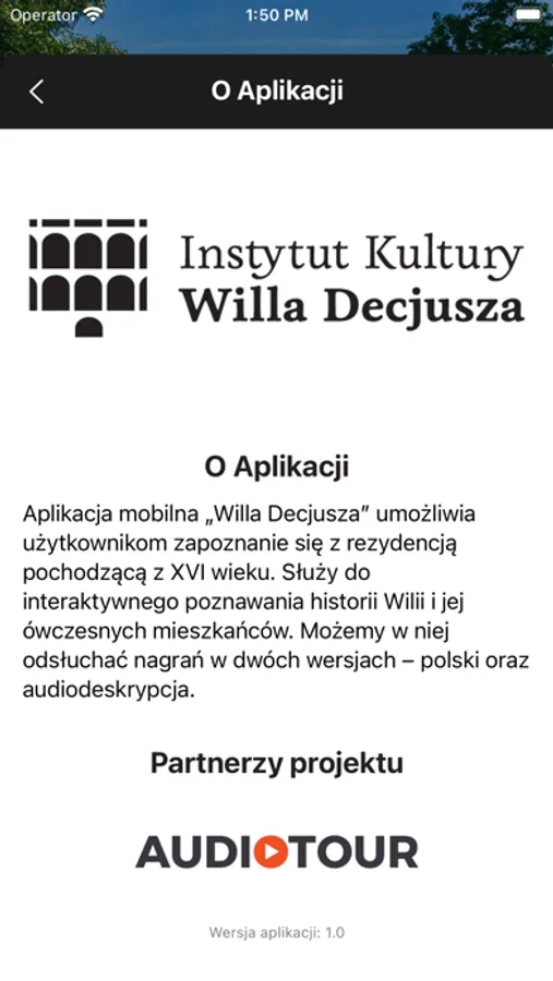 Aplikacja mobilna „Willa Decjusza” umożliwia użytkownikom zapoznanie się z rezydencją pochodzącą z XVI wieku. Służy do interaktywnego poznawania historii Wilii i jej ówczesnych mieszkańców. Możemy w niej odsłuchać nagrań w dwóch wersjach – polski oraz audiodeskrypcja.