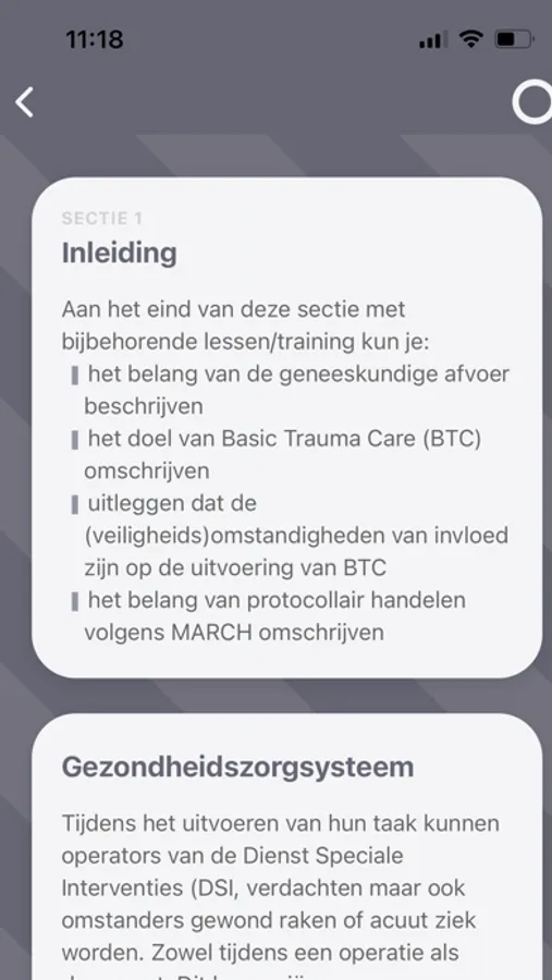 Met deze app kun je gemakkelijk je geheugen opfrissen door stapsgewijs het protocol te doorlopen. Informatie is op ieder willekeurig moment binnen handbereik. Geen ingewikkelde zoekfuncties, maar een overzichtelijke app die er is om jou wegwijs te maken in het MARCH-protocol. Kom je niet uit het protocol? Geen probleem, de handelingen worden stapsgewijs beschreven in het trainingsgedeelte van de app.