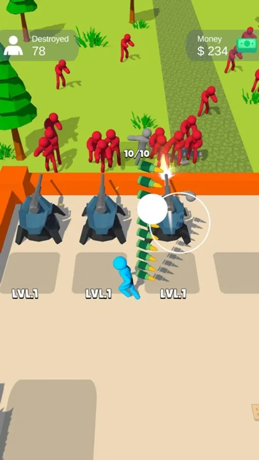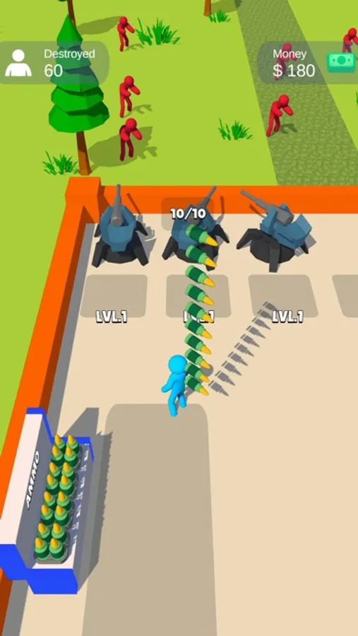 Defend your base and outsmart the enemy in Turret Defense! As waves of foes approach, use your wits and reflexes to avoid their attacks and keep your base safe. But that's not all - you can also evolve your character and turrets using a unique combination of add, merge, and upgrade mechanics. With each passing level, your arsenal becomes stronger and more sophisticated, giving you the edge you need to emerge victorious. With stunning graphics and intuitive controls, Turret Defense delivers an immersive and action-packed experience that will keep you coming back for more. Download now and become the ultimate turret commander!