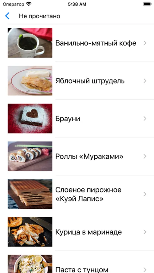 Приложения запоминает, где вы остановились для каждой категории. Благодаря этому вы сможете позже возобновить чтение с того же места. Также можно читать рецепты в случайном порядке (не по категориям).