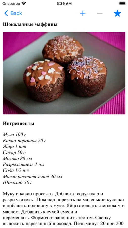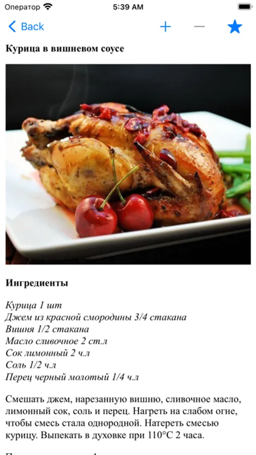 Приложение поддерживает ночной режим и оффлайн режим (без интернета), есть поиск. Понравившиеся рецепты можно добавить в избранное, а также можно поделиться с друзьями. Каждый рецепт сопровождается иллюстрациями при наличии Интернет-соединения.