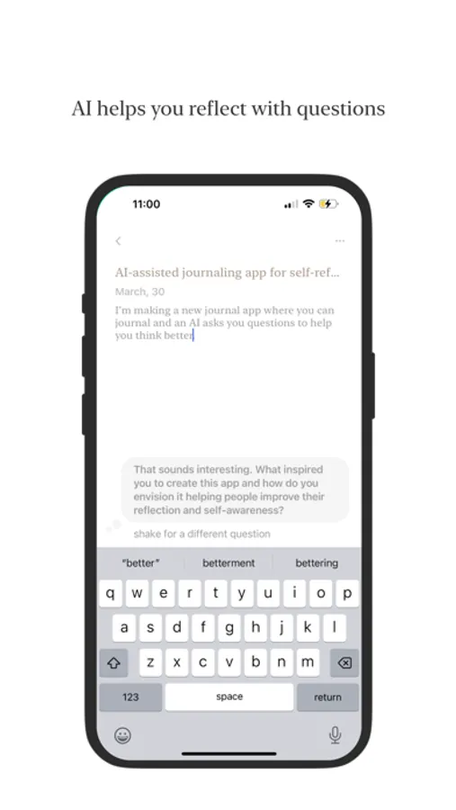 Introspect is an AI journal designed to support you in your journaling journey. Introspect asks you deep questions about what you're writing, helping guide your thoughts and gain more clarity.