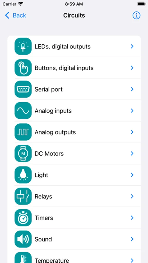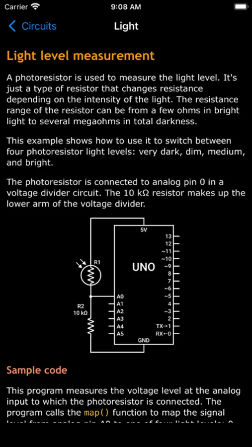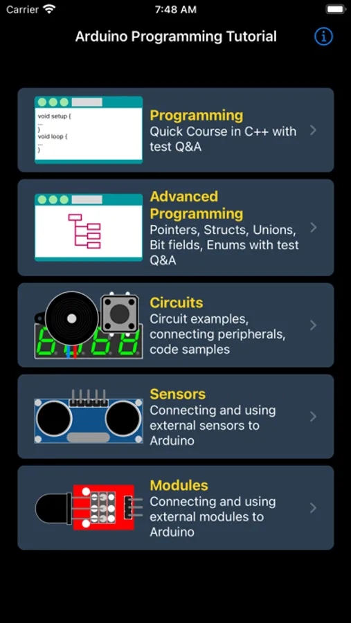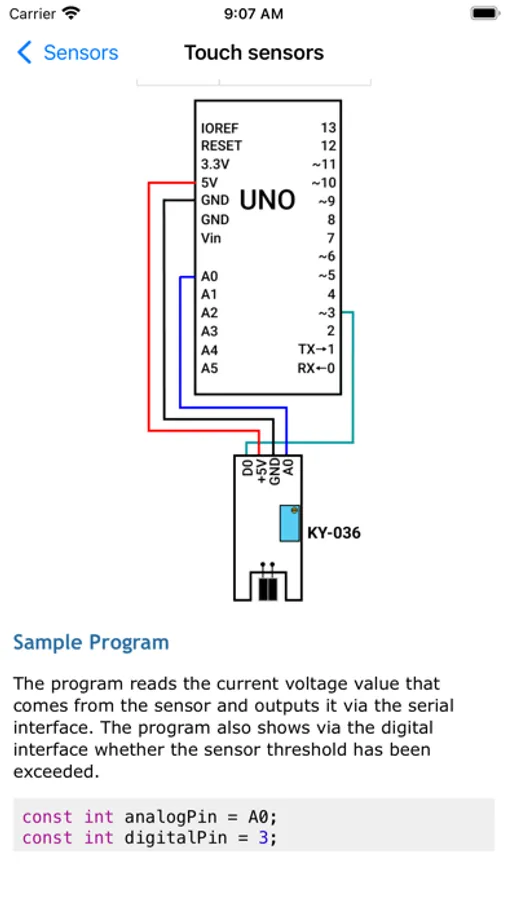 This application contains reference for various peripheral electronic components, analog and digital sensors and external modules for Arduino: their description, usage, integration and code examples.