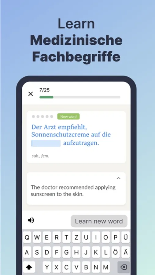 Install our app right now and get the knowledge you need to succeed in the medical field in Germany, Austria or Switzerland!